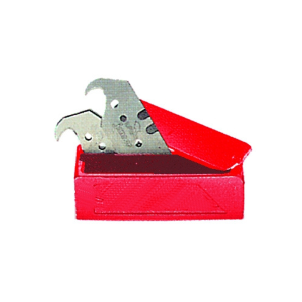 Dostarczany w futerale z tworzywa sztucznego i magazynkiem z 20 ostrzami trapezowymi.