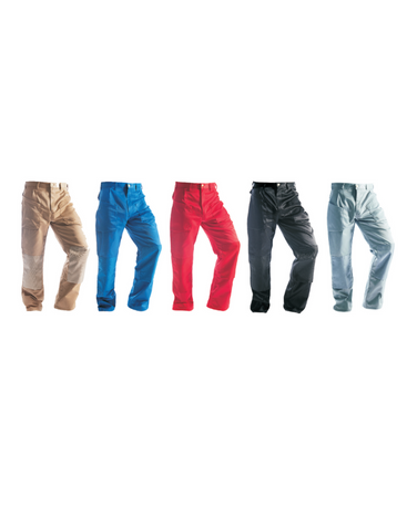 Wysokowartościowy materiał Beaver-Nylon, wytrzymały, przepuszczający powietrze, odporny na brud i olej (spodnie w kolorze czarnym, niebieskim oraz czerwonym).