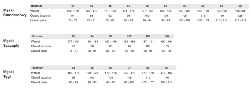Właściwy rozmiar mogą Państwo łatwo ustalić korzystając z poniższej tabeli: